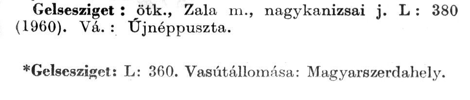 Nyilvános 2202 | 5961 | A szócikkek felismertetett szövege: | (A csillag után az 1972-es kiadású kiegészítő kötetből származó szöveg következik) Gelsesziget: ötk., Zala m., nagykanizsai j. L : 380 (1960). Vá. : Újnéppuszta. *Gelsesziget: L: 360. Vasútállomása: Magyarszerdahely. A szócikkek a következő lexikonból származnak: Cím: Új magyar lexikon Közreműködő: Berei Andor (1900-1979) (szerk.) Szerz. közl.: [szerk. Berei Andor et al.] Kiadás jelzés: 2. lny. Kiadás: Budapest : Akad. K., 1961-1962 Kötetei: 1., A - C 2., D - F 3., G - J 4., K - Me 5., Mf - R 6., S - Z 7. köt., A-Z Kiegészítő kötet (1972) Kiegészítő kötet, 1962÷1980 (1981) ETO jelzet: 03=945.11 Szakjelzet: 030 Cutter: U 28 Nyelv: magyar Megjegyzés: Bibliogr. a címszavak egy részének végén |